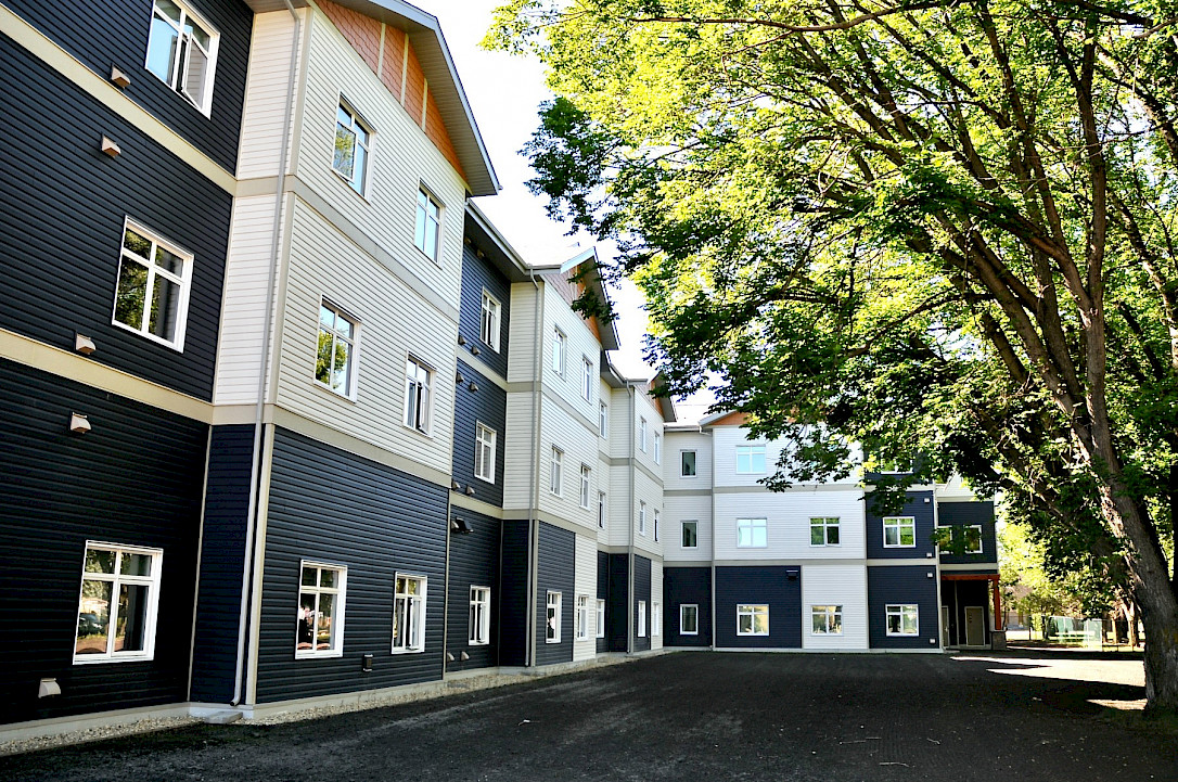 This project, spanning over 90,000 sq. ft. features 90 self-contained suites, and indoor and outdoor amenity spaces, including: a courtyard with planters; covered main floor patios; a dining room; multimedia rooms; a hair salon; a library and work centers; commercial laundry; and a commercial kitchen. The design gives all residents the flexibility and independence they value most when living in such a facility.
