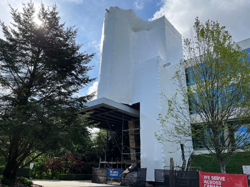 The first phase involved recladding a 9,500 sq. ft. section of the exterior wall with new stones. In the second phase, we performed recladding and re-lamination on 7,500 sq. ft. of the rooftop exterior section and identified and remediated three roof leaks of which the client and facilities manager were previously unaware. The third phase focused on recladding a 4,000 sq. ft. section of the interior wall with new stones.