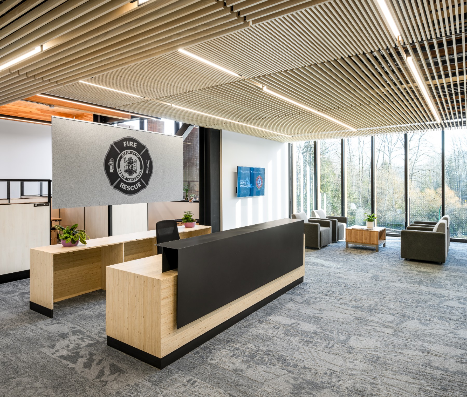 The fire hall and rescue centre supports Maplewood, Dollarton, and surrounding Indigenous communities as they expand into higher density residential and commercial neighbourhoods in Vancouver. The new facility was also designed to meet post-disaster conditions so it can perform as an Emergency Operations Centre.