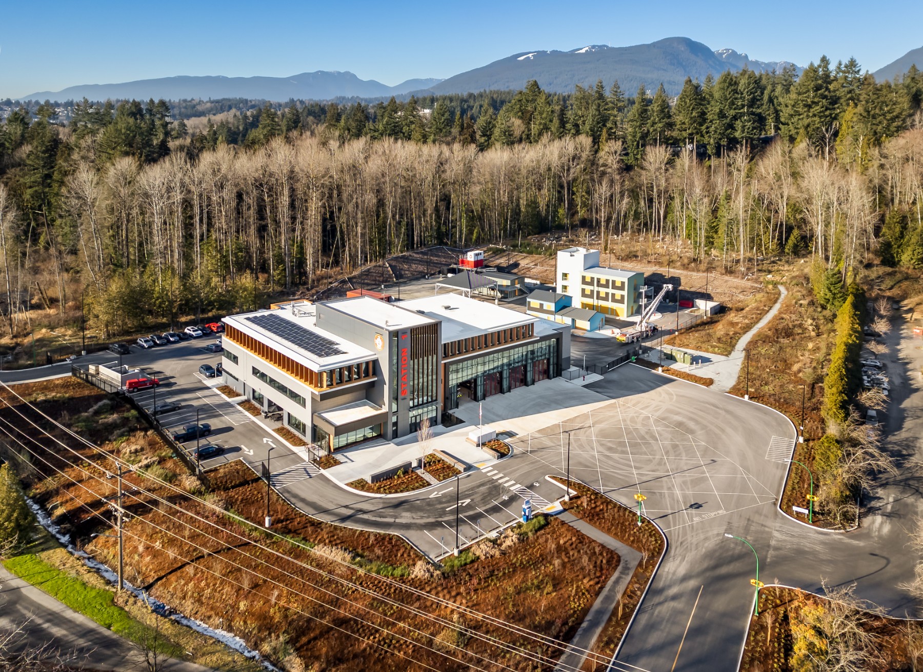 Maplewood Fire and Rescue Centre in North Vancouver is now complete. The 48,000 sq. ft. building includes a new state-of-the-art indoor training building with apparatus bays and support areas, a 1.6 acre outdoor training area, head quarters, and four double bay fire halls.