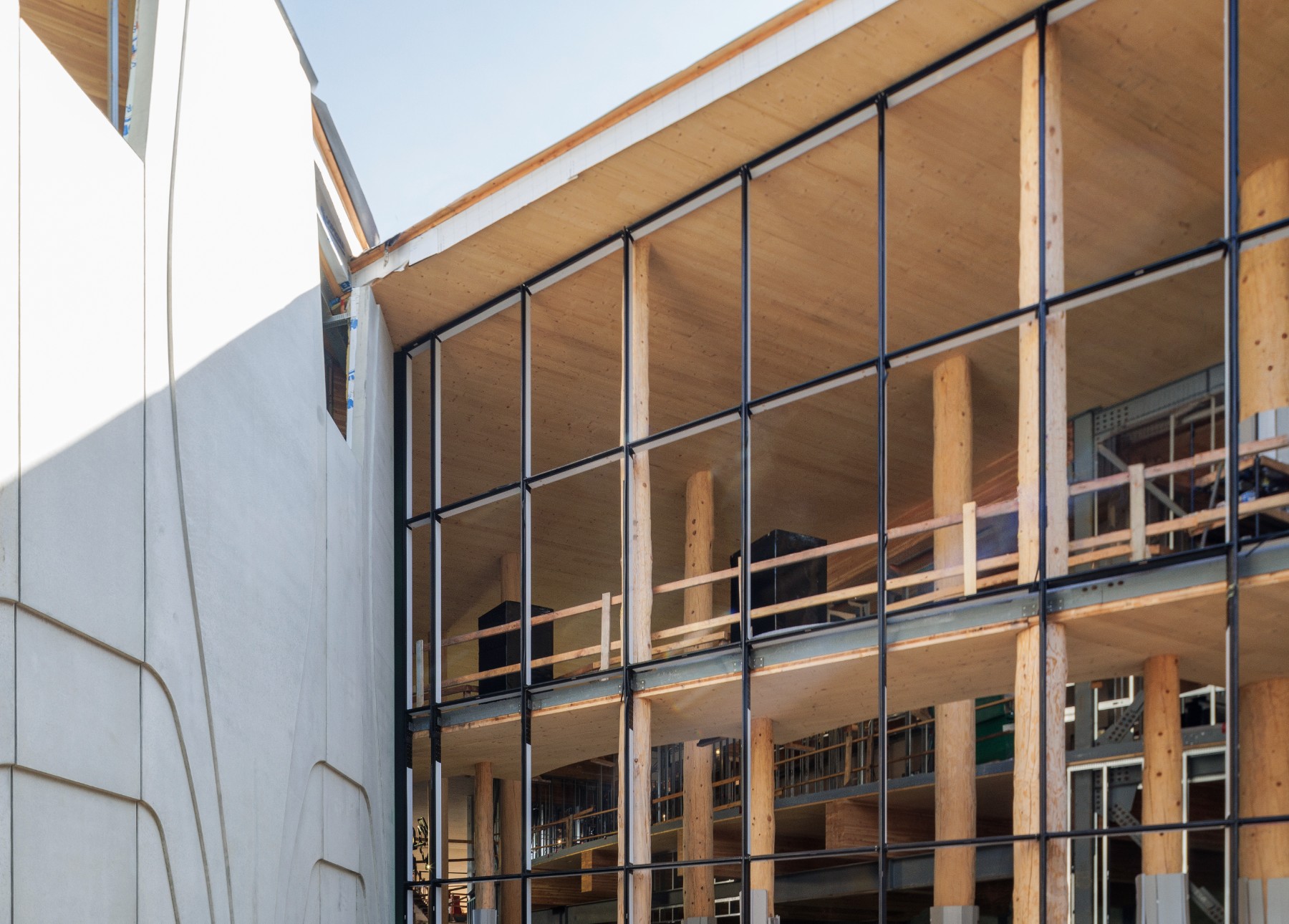 When complete, the 29,000 sq. ft. mass timber building will include public lecture theatres, faculty offices, classrooms, meeting spaces, a creation space, a sky classroom, a 150-seat lecture hall, an Elder’s room, and large gathering spaces with ventilation designed to accommodate smudging ceremonies. The expansion will be built as a separate structure with a seismic gap to mitigate impacts on the original occupied Fraser Law Building and meet safety standards.
