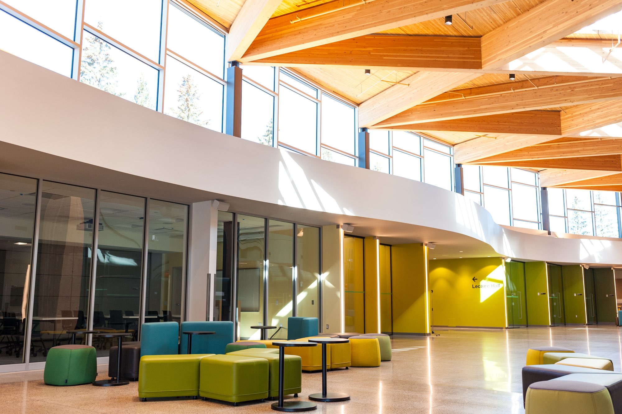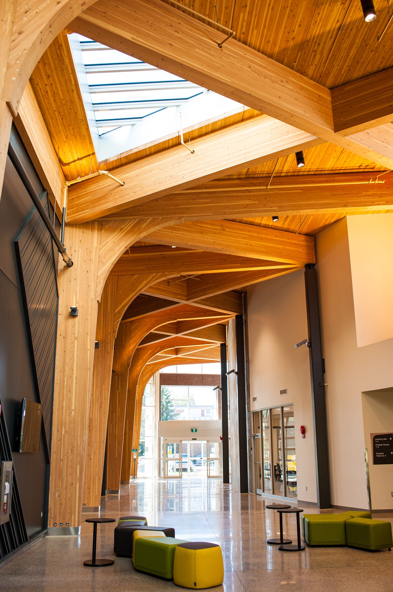 The updated space – which includes glulam laminated timber and a self-performed curved concrete shear wall – provides state-of-the-art facilities for students and researchers. Features include common amenity areas, learning labs, lecture halls, seminar rooms, maker spaces, offices and meeting rooms. Exterior components of the building envelope have also be upgraded.