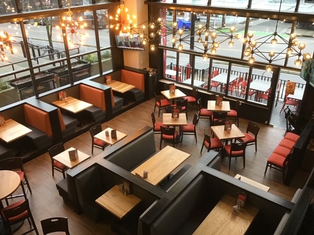 Our work on Boston Pizza’s flagship restaurant in Vancouver’s Stadium district included a complete gutting, restoration and refitting.